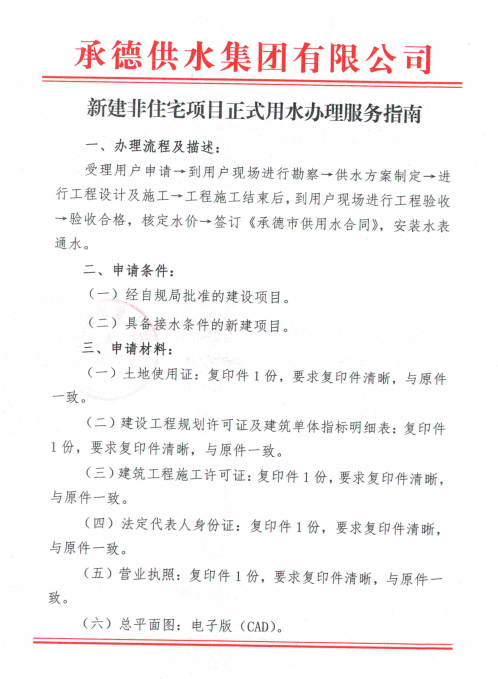 新建非住宅項目正式用水辦理服務指南